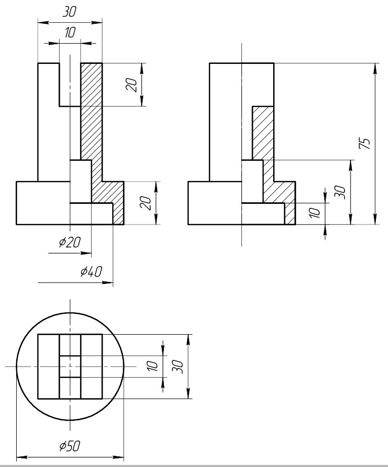 По данному виду постройте ещё два вида детали .Выполните необходимые разрезы.