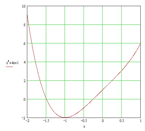 подставляем и находим y(-1) = (-1)^4+4*(-1)+1=1 - 4 + 1 = -2