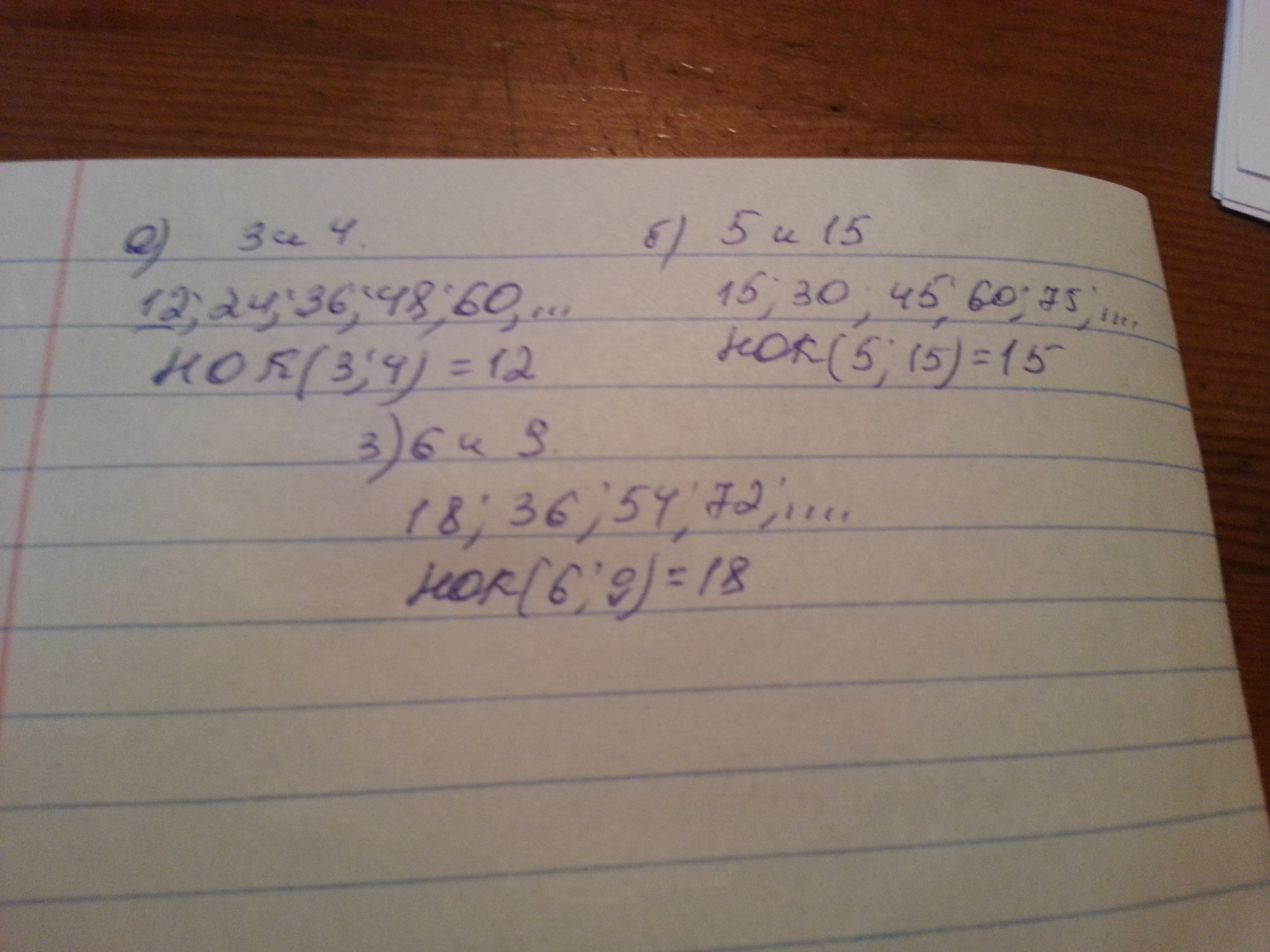 найдите несколько общих кратных двух данных чисел и укажите их наименьшее общее кратное а) 3 и 4, б) 5 и 15 , в) 6 и 9.