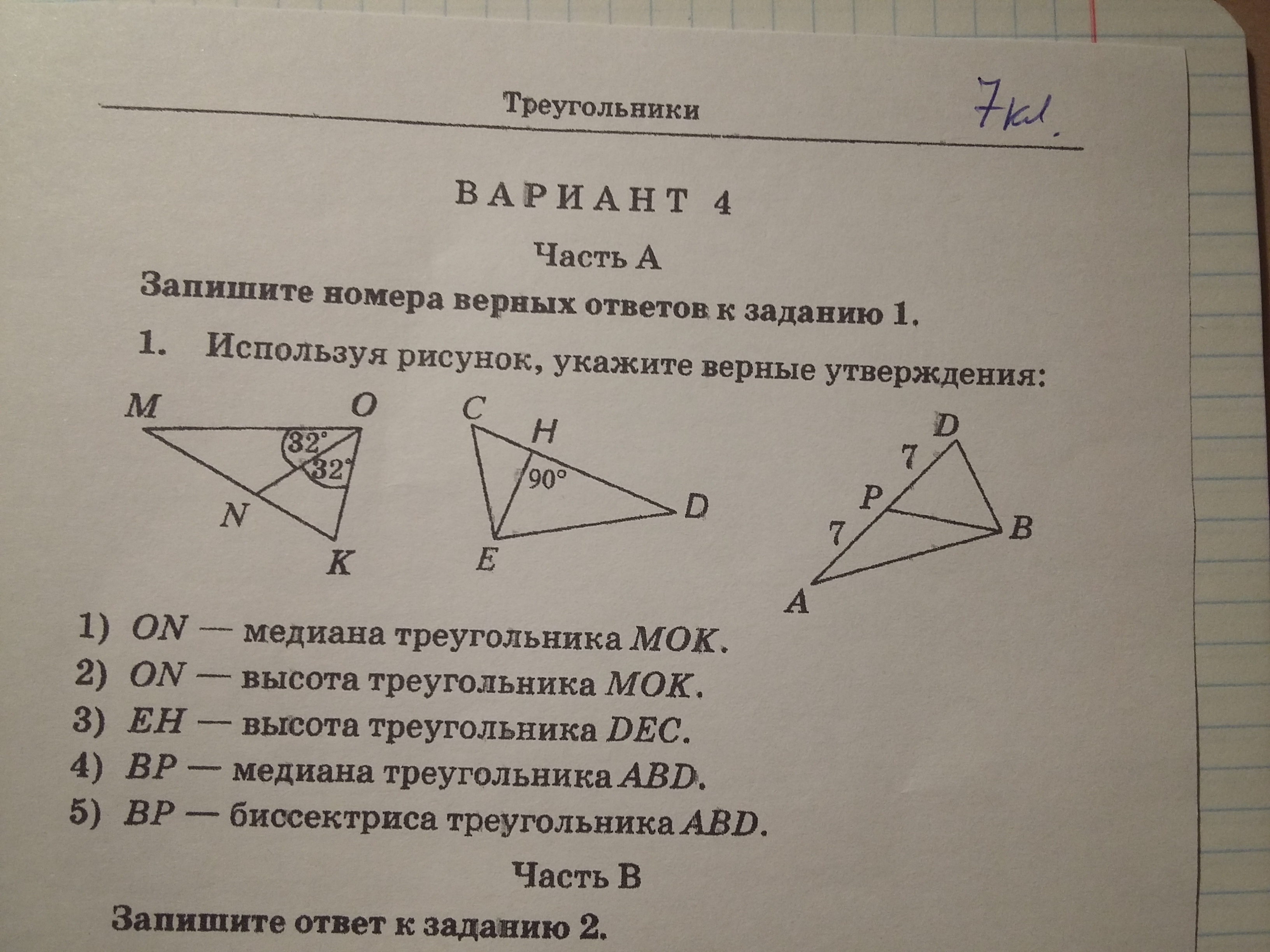 Медиана-отрезок соединяющий вершину треугольника с серединой противоположной стороны, поэтому 4 верно, а 5 нет