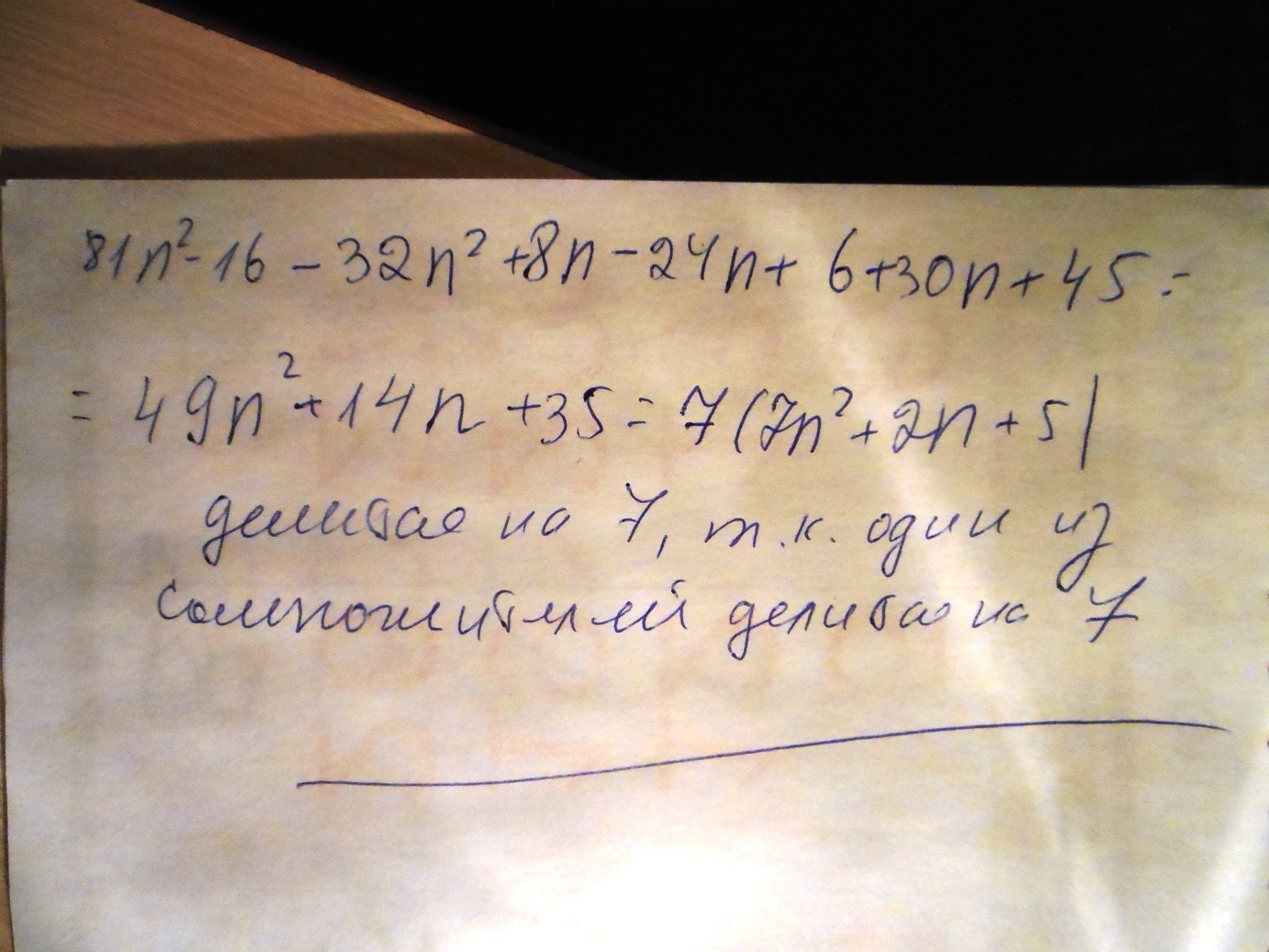 (9n-4)(9n+4)-(8n-2)(4n+3)+5(6n+9) делится нацело на 7