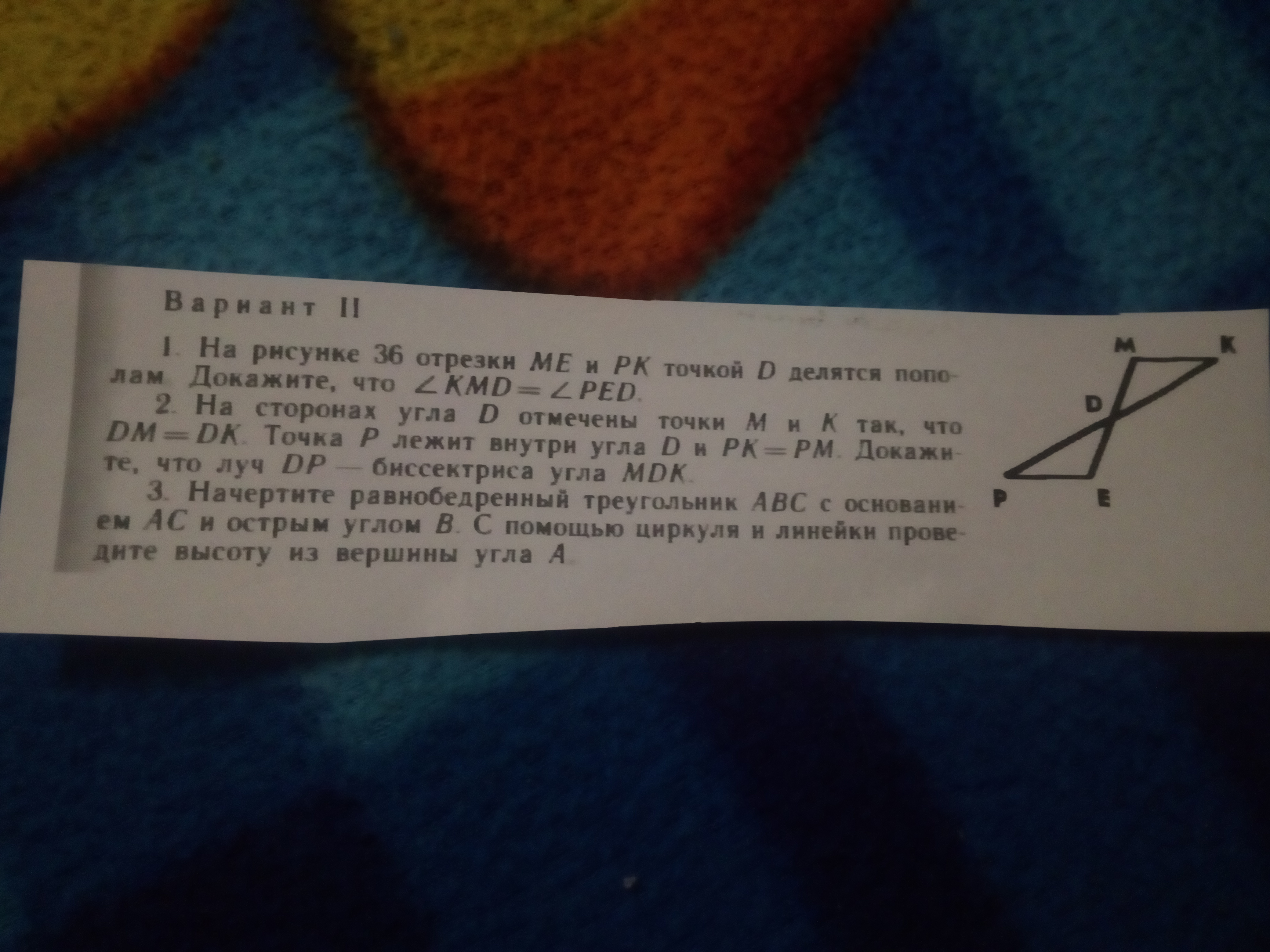 1). угол PDE = углу MDK - вертикальные.