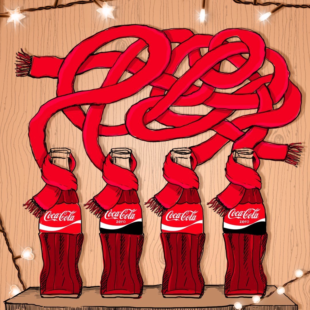 Поможешь дедушке разобраться с загадкой? На столе стоит 4 бутылочки Coca-Cola. Какие две бутылочки делят между собой один шарф? Пиши номера бутылочек цифрами!