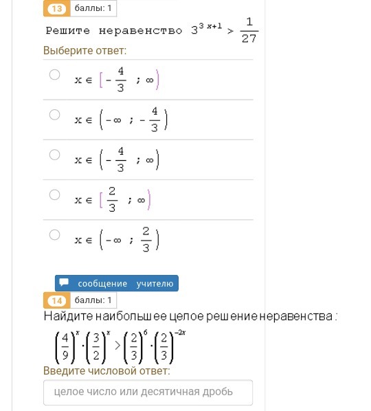 Там в последнем примере по теореме Виета (сумма корней равна коэффициенту при Х взятому с противоположным знаком