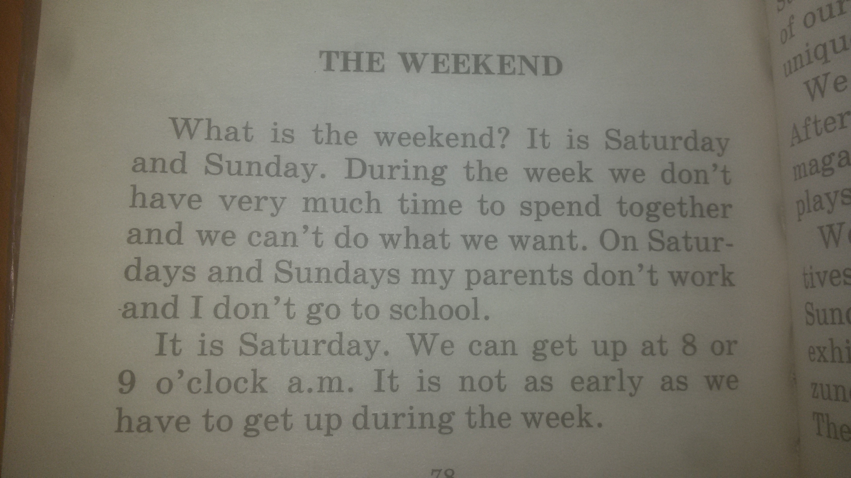 Сегодня (это) суббота.Мы можем встать в 8 или 9 часов утра.Это не так рано, как мы встаём на протяжении (во время) рабочей недели (будней)