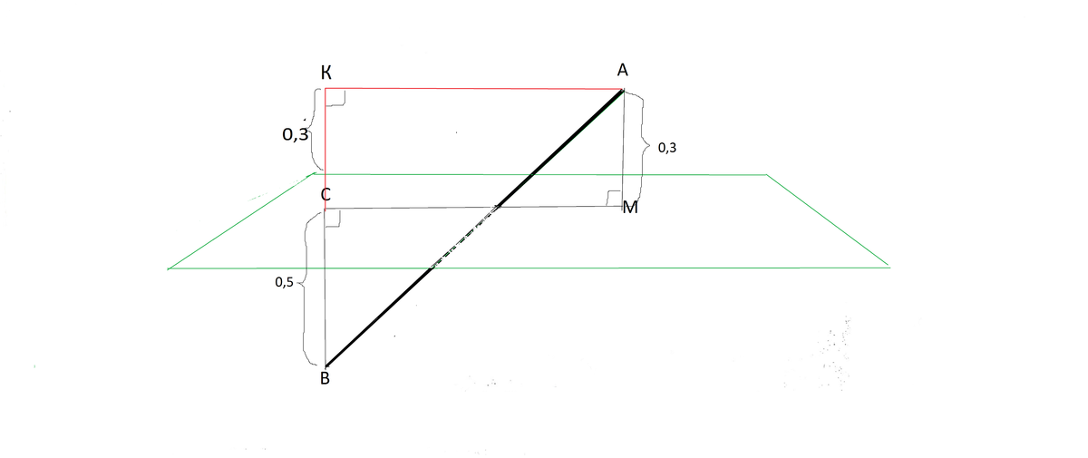 Из С отложим на продолжении ВС отрезок СК длиной равный расстоянию АМ.