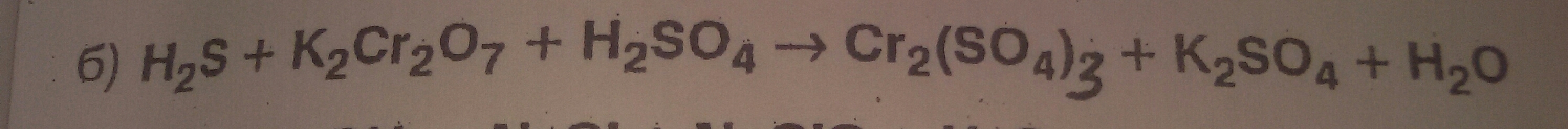 3H2S + 4K2Cr2O7 + 13H2SO4 -> 4Cr2(SO4)3 + 4K2SO4 + 16H2O