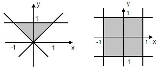 Изобразить в прямоугольной системе координат В которой истины P следующего порядка: 1) (y≥x) и (y+x≥0) и (y≤1) 2) (|x|≤1) и (|y|≤1)