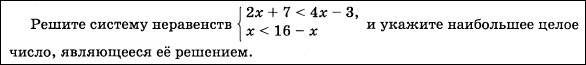 left { {{2x+7 textless  4x-3} atop {x textless  16-x}} right. ; ;  left { {{2x-10 textgreater  0} atop {2x textless  16}} right. ; ;  left { {{x textgreater  5} atop {x textless  8}} right. ; ; ; ; 5 textless  x textless  8\\Naibolshee; celoe:; ; x=7
