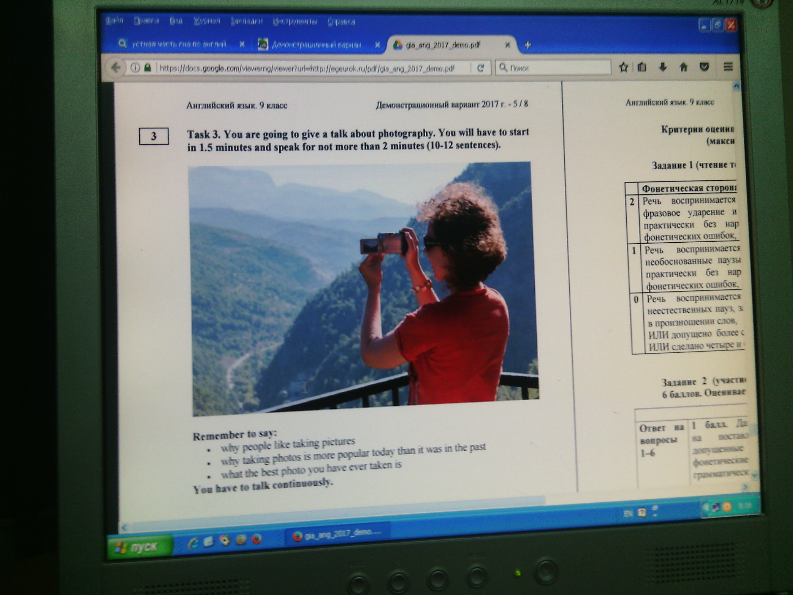 Well. On the picture we can see and old woman in red T-shirt. She has got curly brown hair. Also she is wearing sun glasses. Moreover, she is holding a camera. Maybe she wanted to capture (запечатлеть) this beautiful view behind her. Then, there is an exciting panorama of vast green forests.