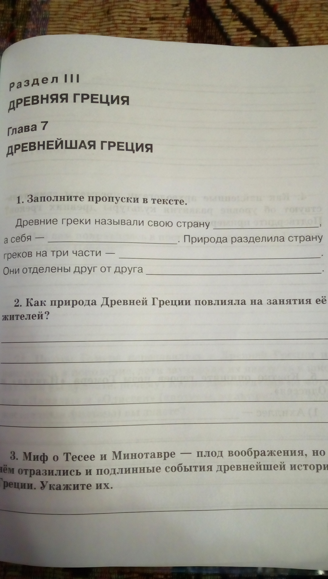 Древние греки называли свою страну Элладой, а себя - эллинами. Природа разделила страну на три части - Северную, Среднюю и Южную. Они отделены друг от друга (не знаю)