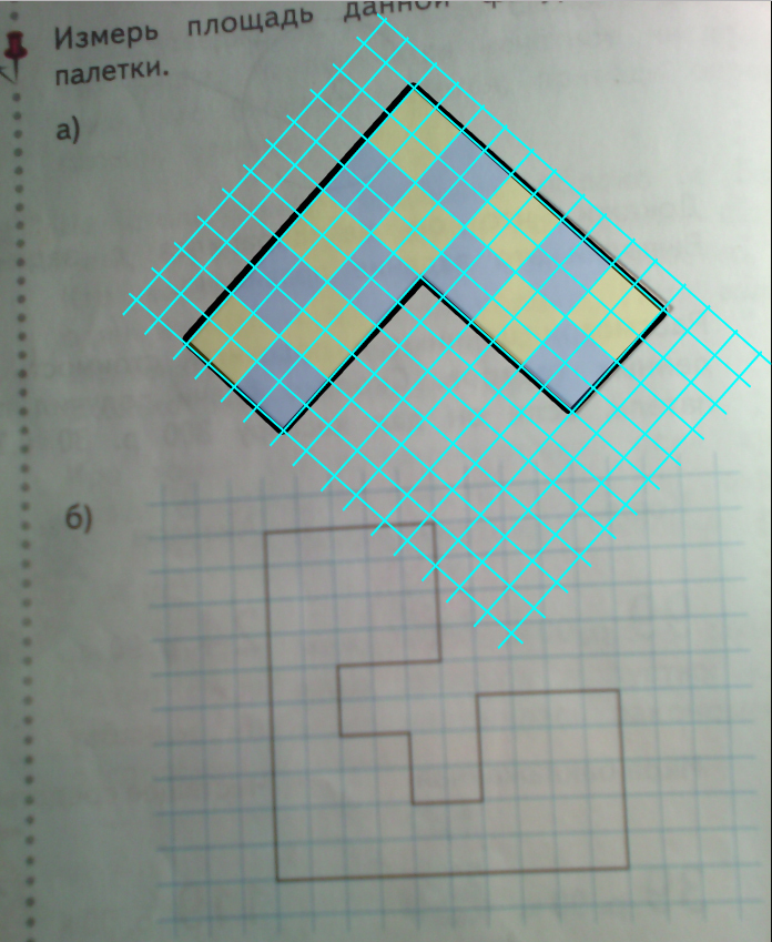 Приложим палетку так, чтобы углы палетки совпали с углами фигуры.