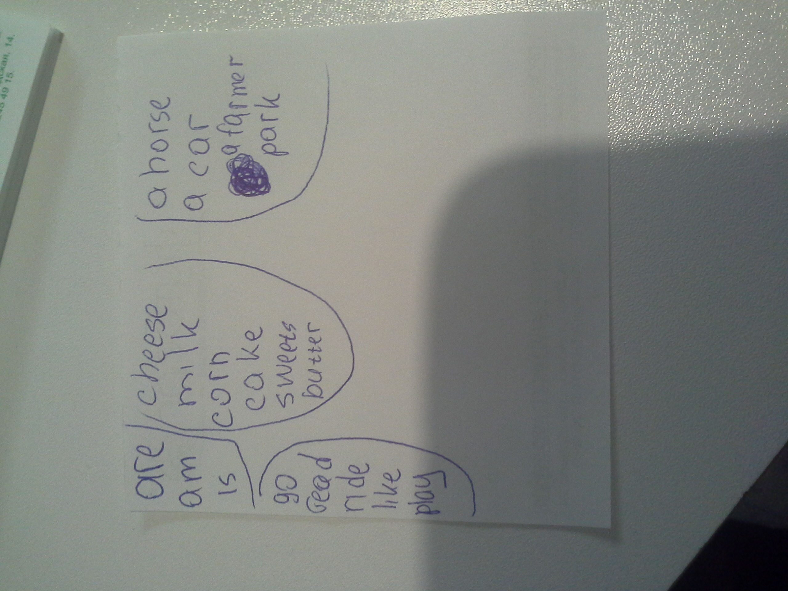 напиши слова в 3 колонки cheese,a horse,a car,are,go,corn,read,milk,cake,ride,sweets,butter,is,count,a farmer,am,like,a park,play