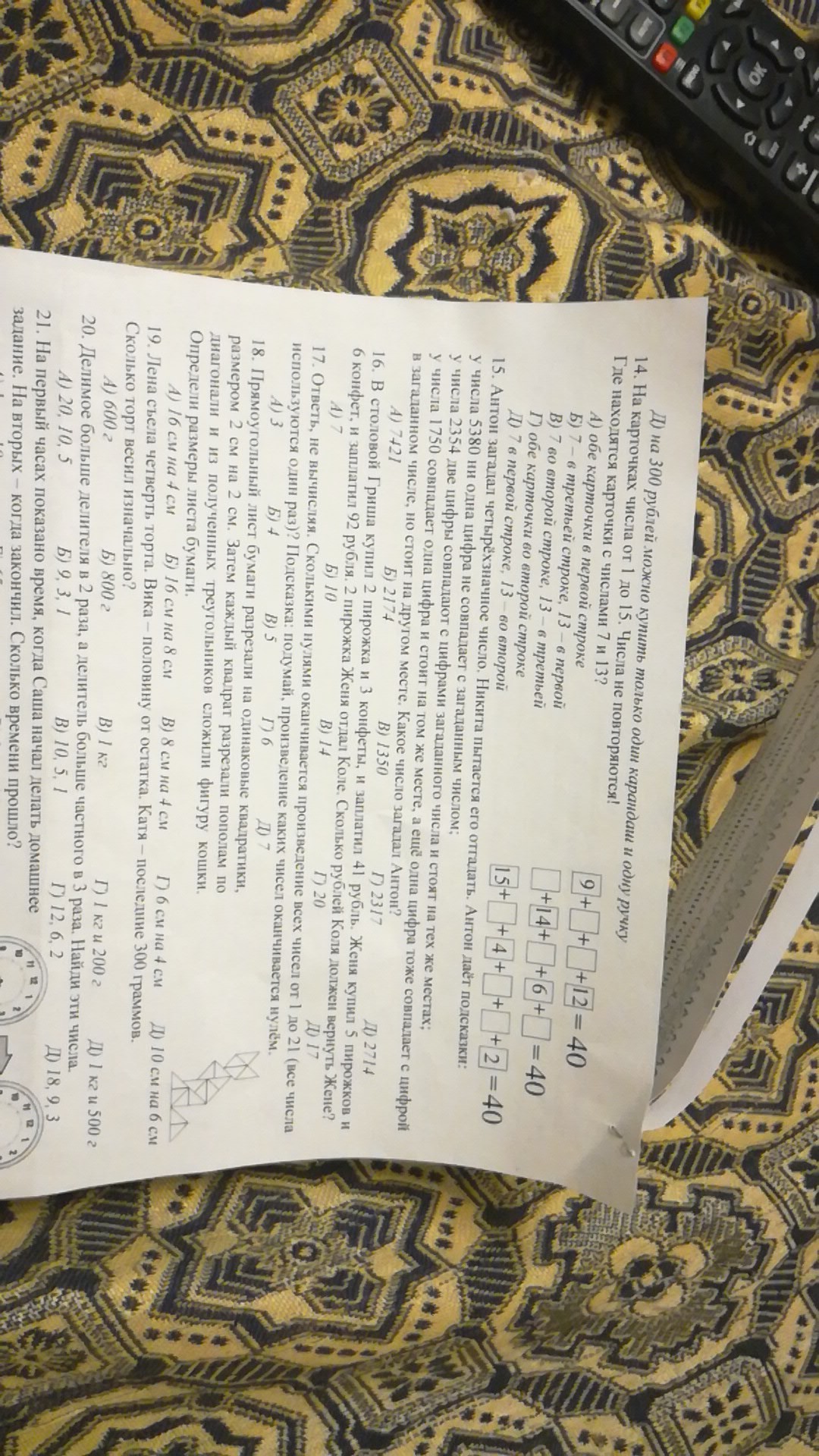 По вычислениям пирожки стоят 10 руб., а конфеты по 7 руб .следовательно Коля должен вернуть Жене 20 руб. Ответ Г)20
