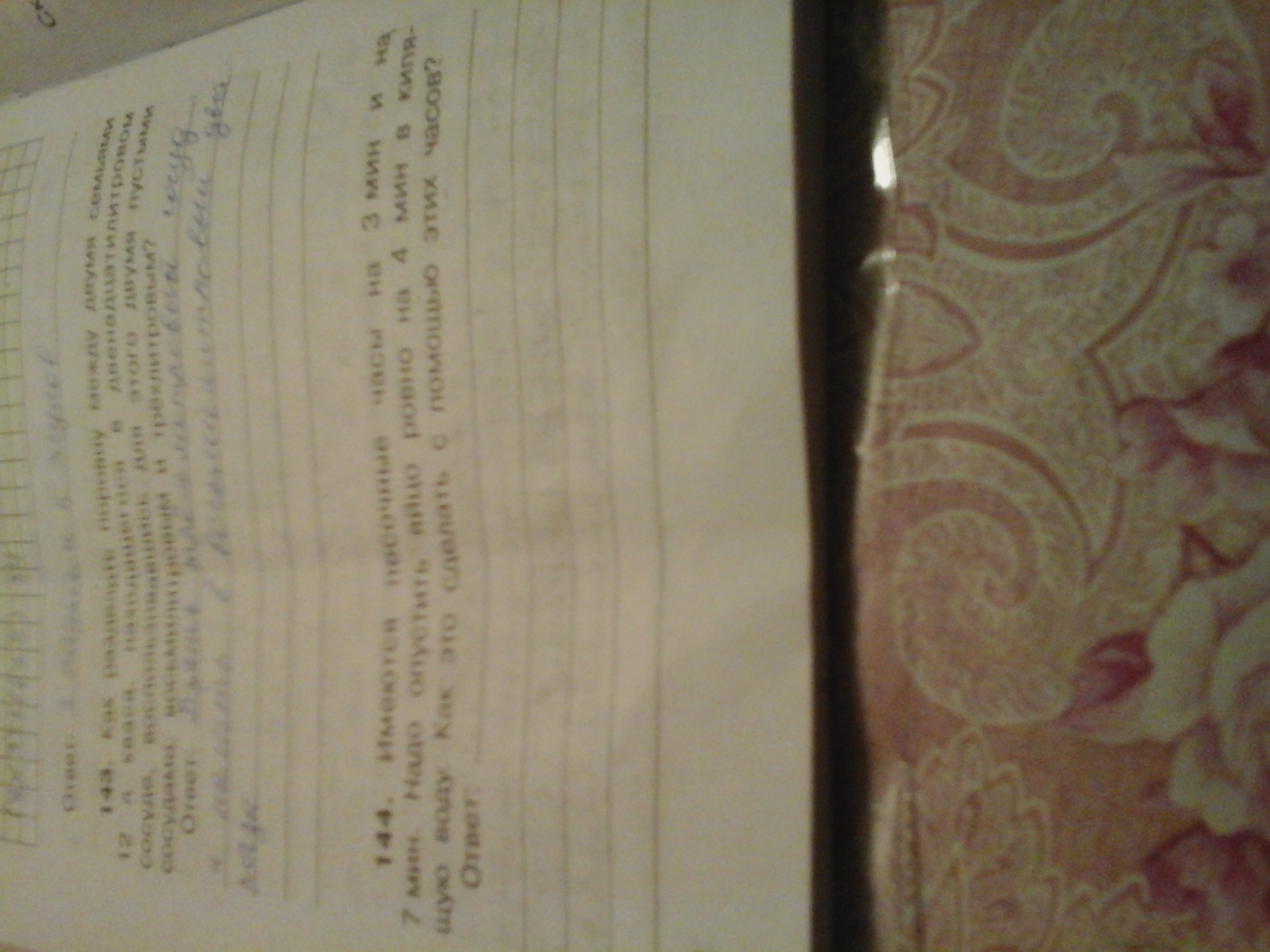 решите пожалуйста . Имеются песочные часы на 3 мин и на 7 мин . Надо опустить яйцо ровно 4 мин в кипящую воду. Как это сделать с помощью этих часов?