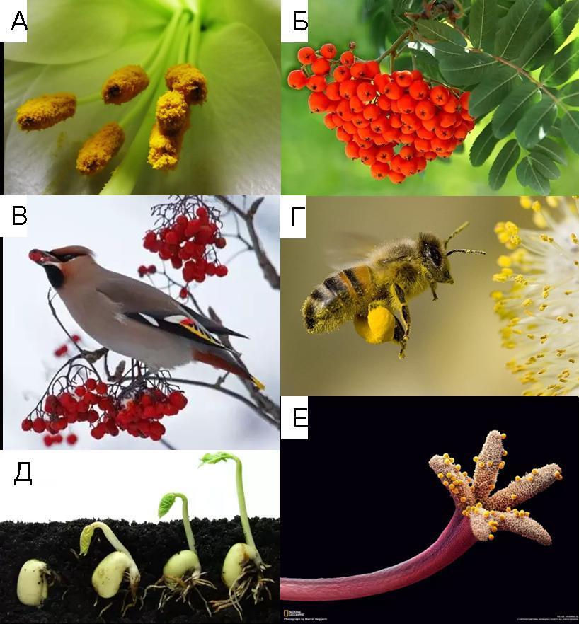 деагбв по моему так, ну д это последовательность роста е развитие растения а уже довольно взрослое растение, г пчела собирает с него пыльцу, б растение созревает. в его уже кушает птичка)