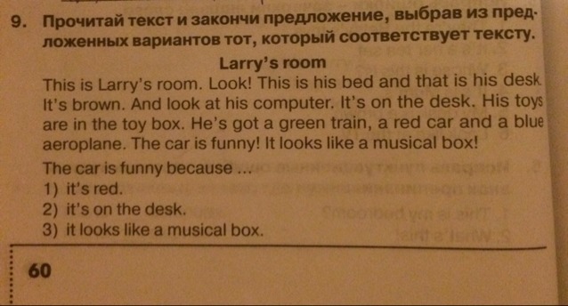Прочитай текст и закончи предложение выбрав из предложенных вариантов тот, который соответствует тексту