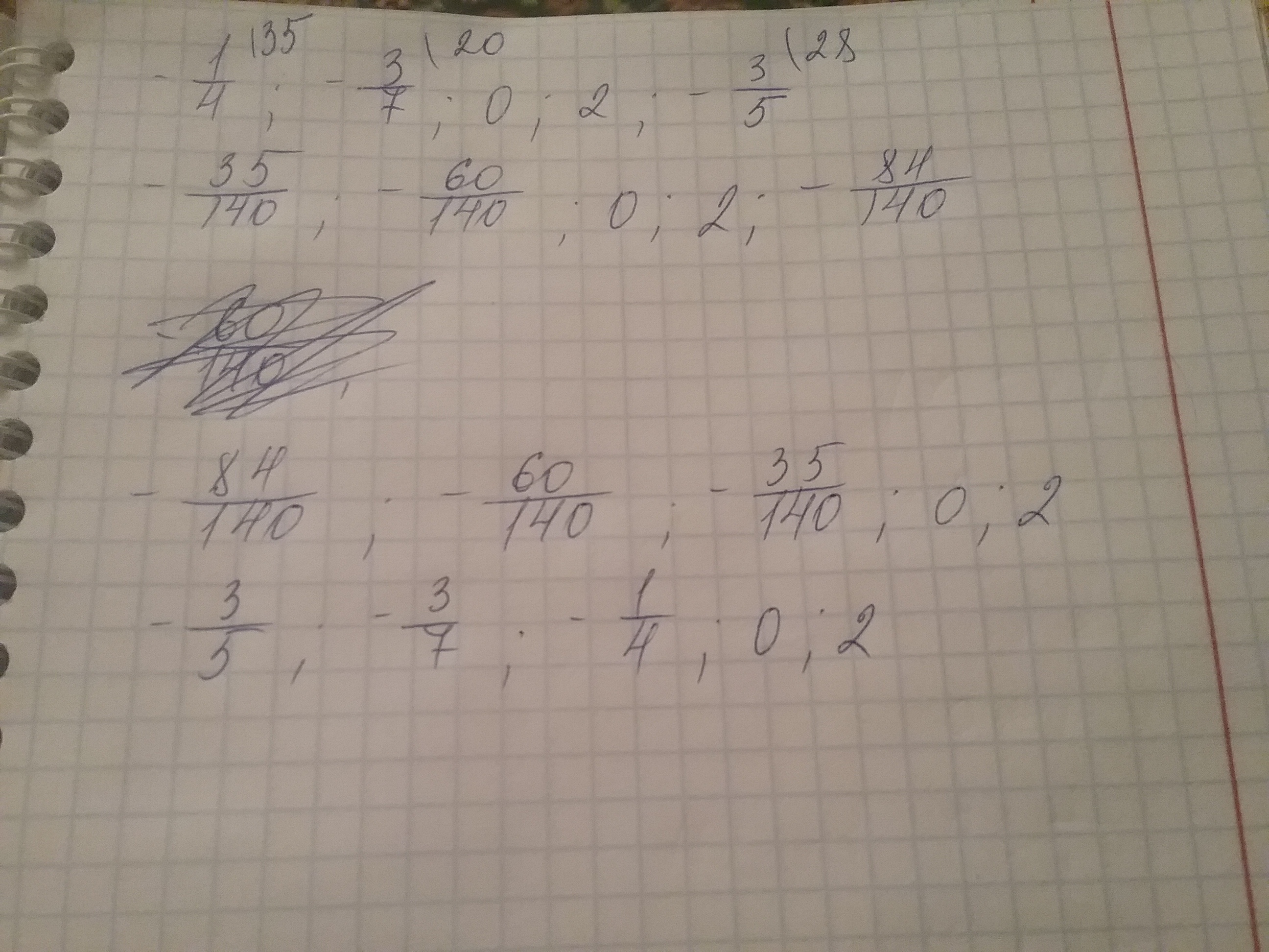 ЗАПИСАТЬ В ПОРЯДКЕ УБЫВАНИЯ С РЕШЕНИЕМ. - 1/4, -3/7, 0 , 2 , - 3/5 - это дроби а не деление