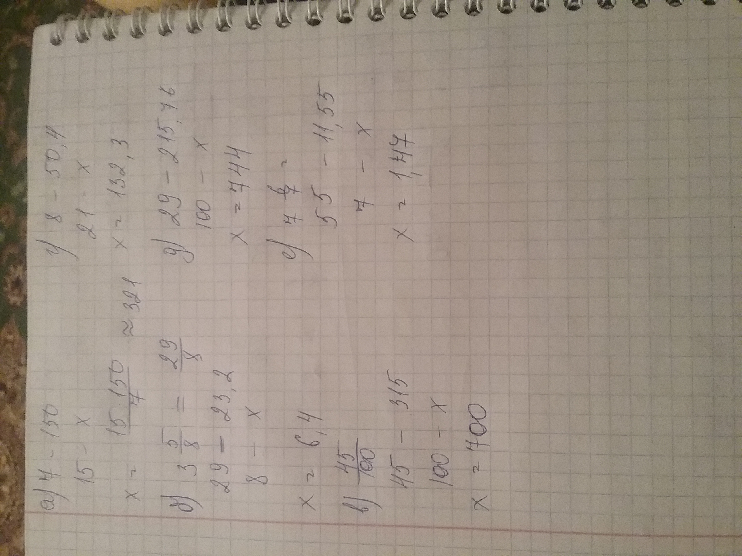 Найдите число: а) 7/15 которого равны 150, б) 3 целых 5/8 которого равны 23,2, в) 0,45 которого равны 315, г) 8/21 которого равны 50,4, д) 29% которого равны 215,76, е) 7 целых 6/7 которого равны 11,55.