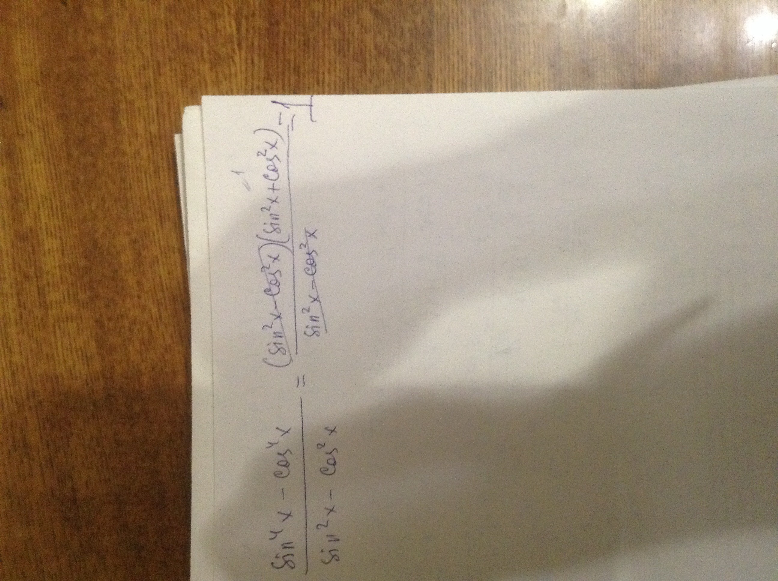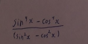 (sin⁴x-cos⁴x)/(sin²x-cos²x)=(sin²x-cos²x)(sin²x+cos²x)/(sin²x-cos²x)=sin²x+cos²x=1