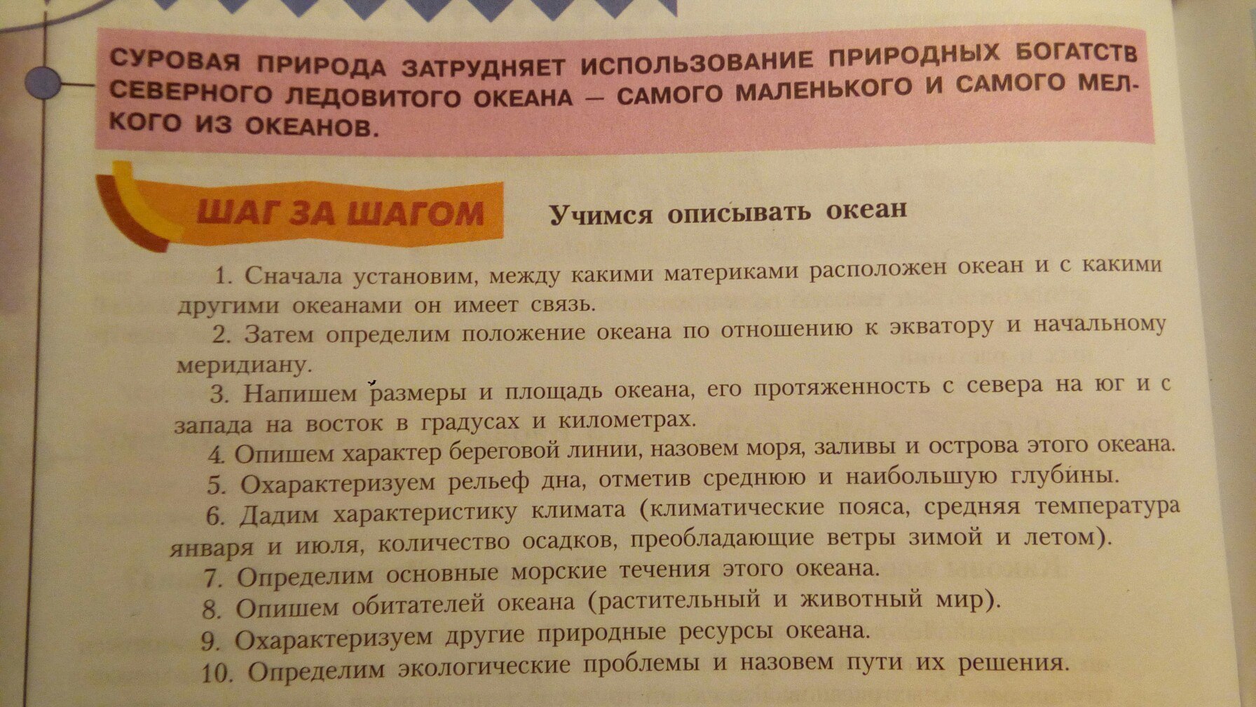 Учимся описывать океан. Задача - Описать Тихий океан и Северный Ледовитый океан по плану.