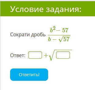 frac{b^2-57}{b- sqrt{57} } = frac{(b^2-57)(b+ sqrt{57} )}{b^2-57} =b+ sqrt{57}