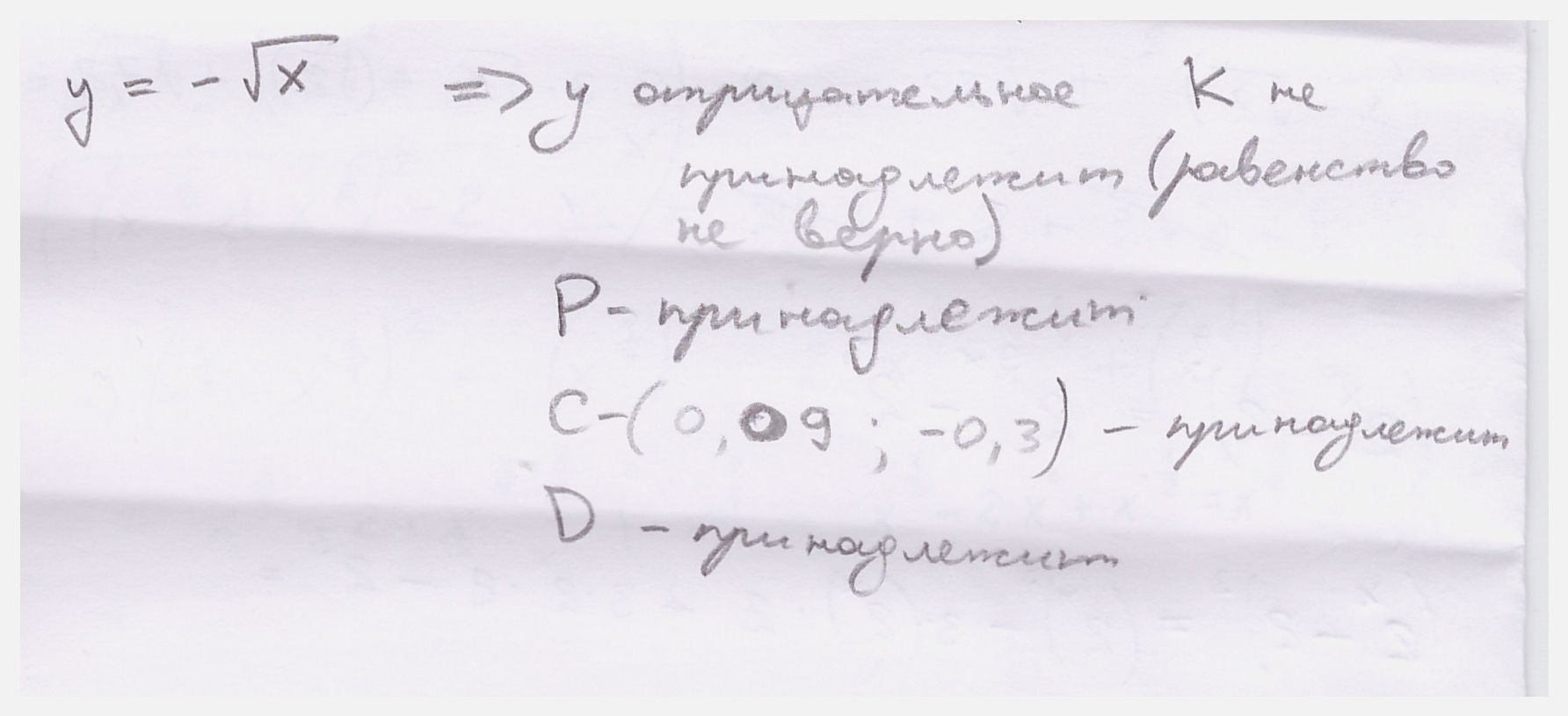 Помогите, срочно) Укажите точку, которая не принадлежит графику -√х: K(16,4), P(6,25,-2,5), C(0,9), -0,3), D (3,-√3)