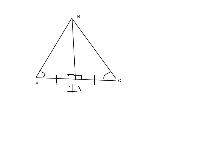 У треугольников DBA и DAC есть общая сторона, BD, которая делит основание AC на две равные части. AD = DC по условию, а так как треугольник равнобедренный, то AB = DC. Следовательно, треугольники равны