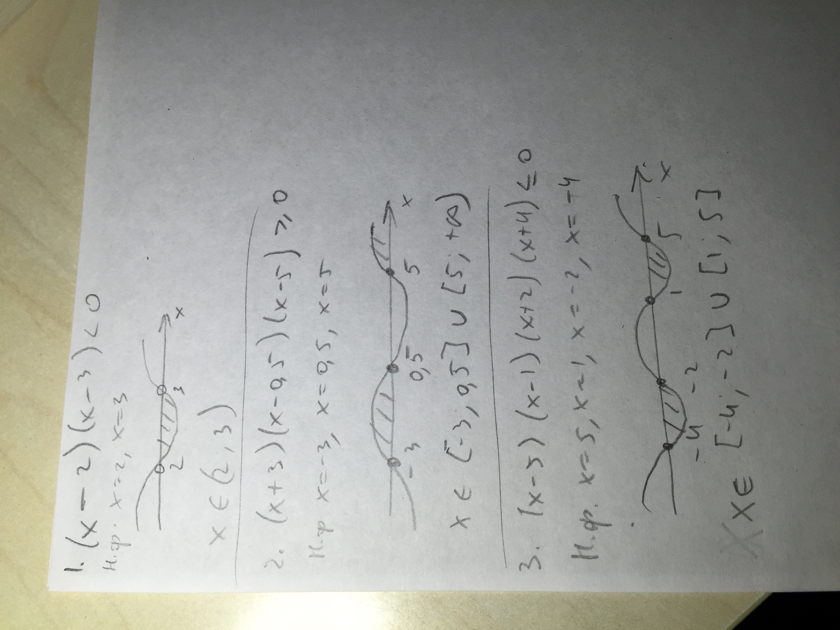 3. (х-5)(х-1)(х+2)(х+4) меньше или равно 0