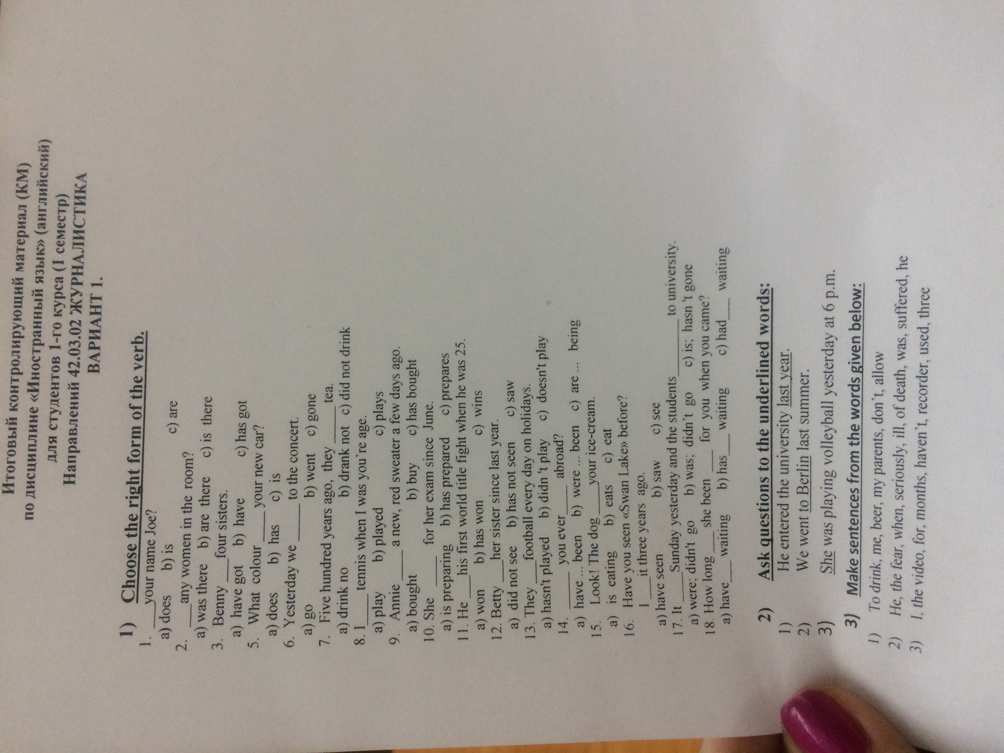 ответ на 5и тест a) a have are b) has c) are d) am