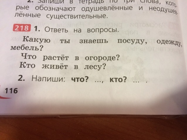 2) Диван(что), кровать(что), стол(что), тарелка(что), кружка(что), вилка(что), заяц(кто), медведь(кто), олень(кто).