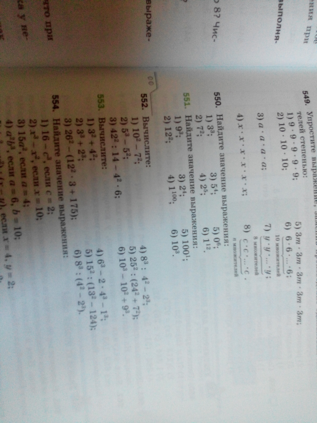 3³=27; 7²=49; 5⁴=625; 2(в 5 степени)=32; 0(в 6 степени)=1; 1¹²=1