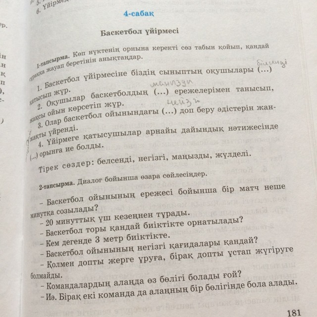 Составить диалог на казахском про баскетбол в школе. Надо что-то сделать со вторым заданием:
