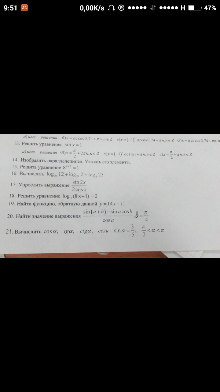20. (Sin(a+b)-sina*cosb) / cosa = (sina*cosb+cosa*sinb-sina*cosb) / cosa= =sinb. В скобки взят числитель