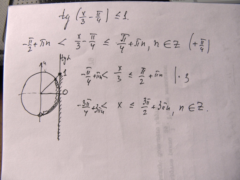 Решение с помощью единичного круга и линии тангенса.