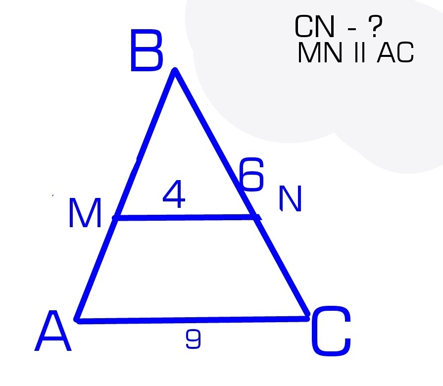 Трикутник МВN подібний трикутнику АВС, тому за властивістю подібних трикутників маємо: