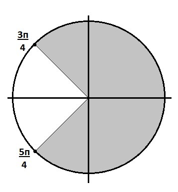 Косинус равен - корень из 2 на 2 при x = 3п/4 и 5п/4. Решение в приложении.