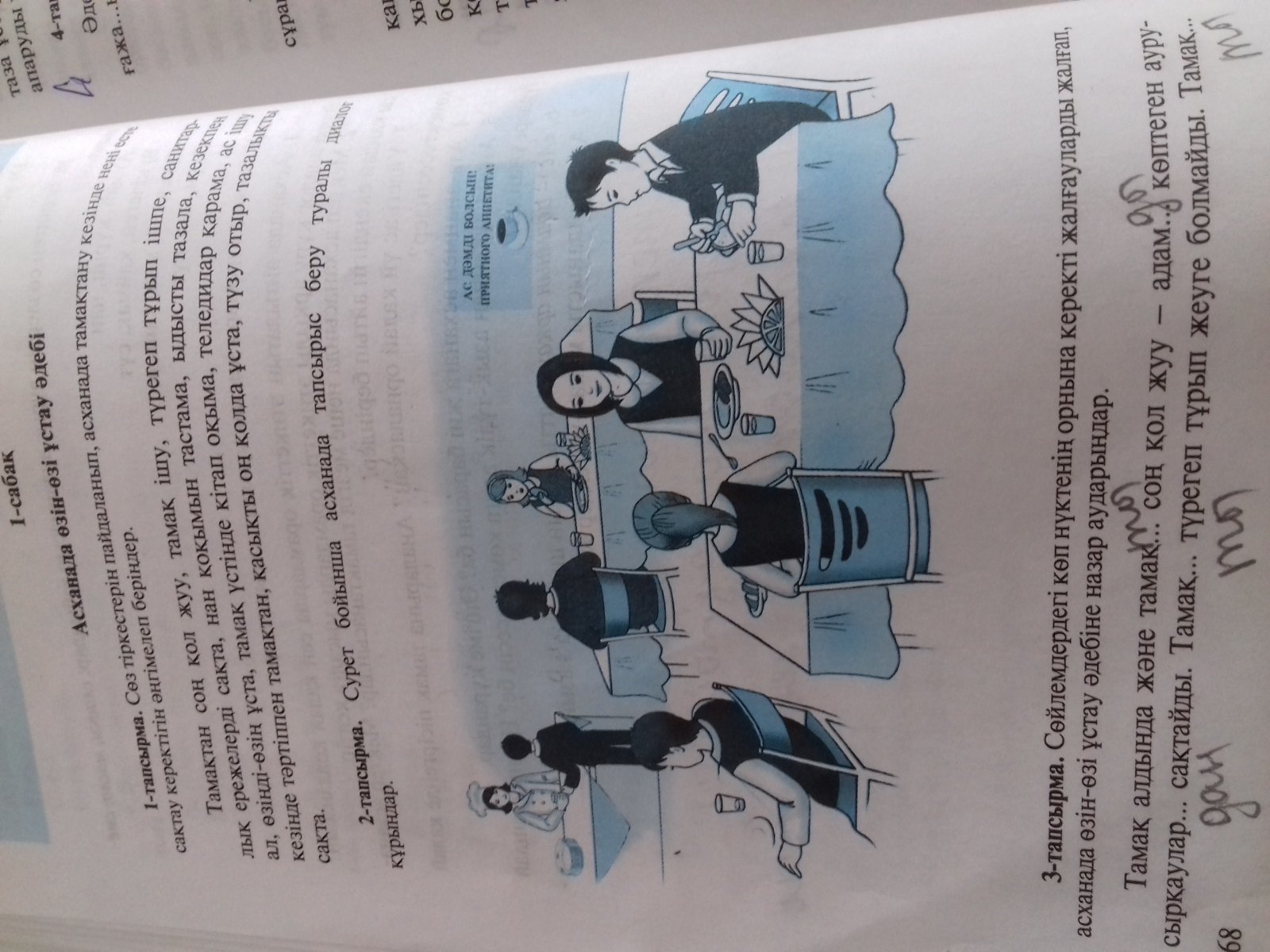 можете пожалуйста составить диалог на казахском по этой картинке( желательно казахскими буквами)