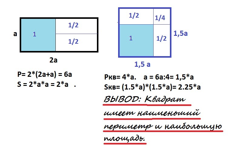квадрат имеет наибольшую площадь при одинаковом периметре.