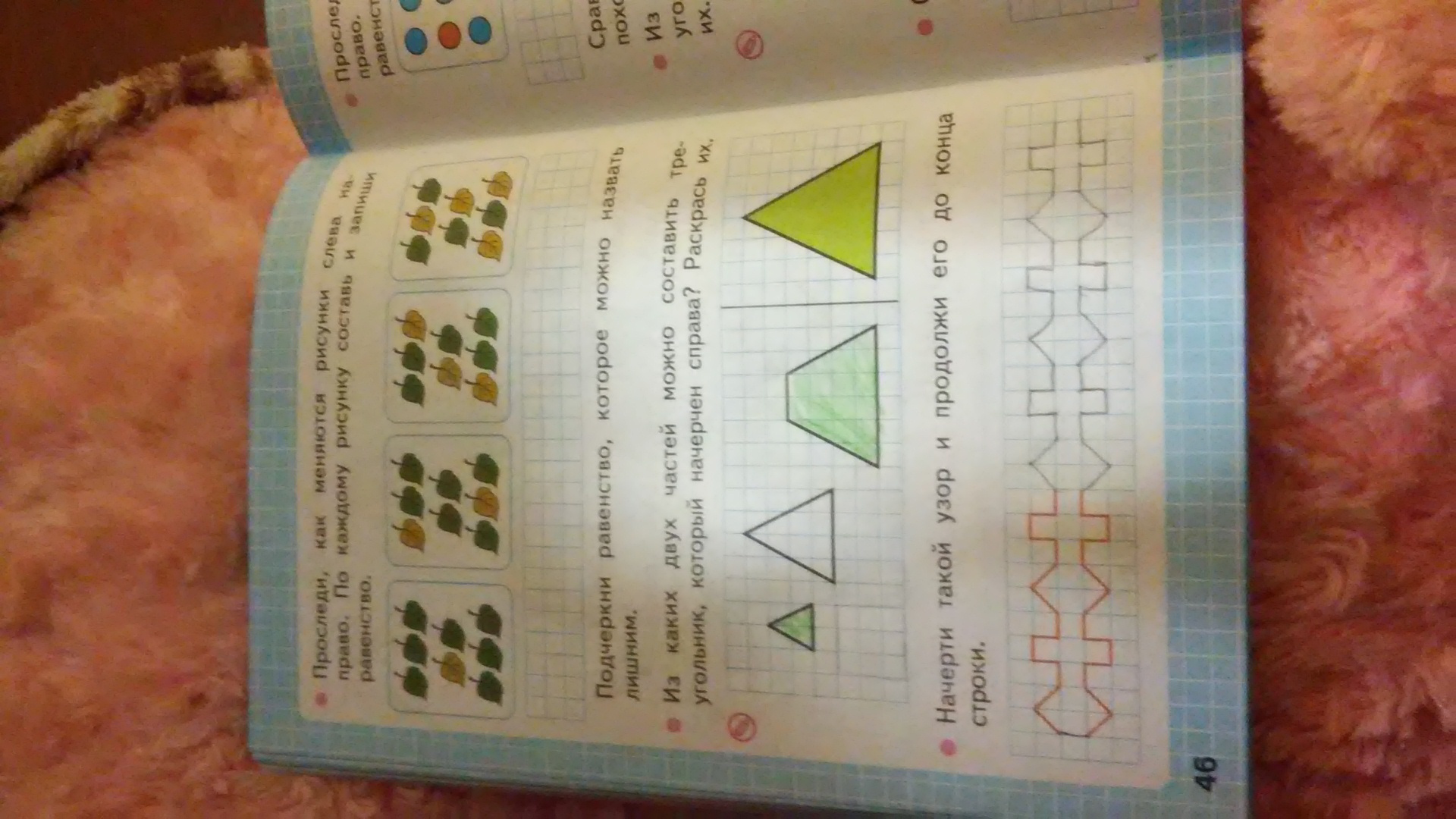 1)7+1=8 2)6+2=8 3)5+3=8. 4)4+4=8. как меняется рисунок увеличиваются желтые листочки