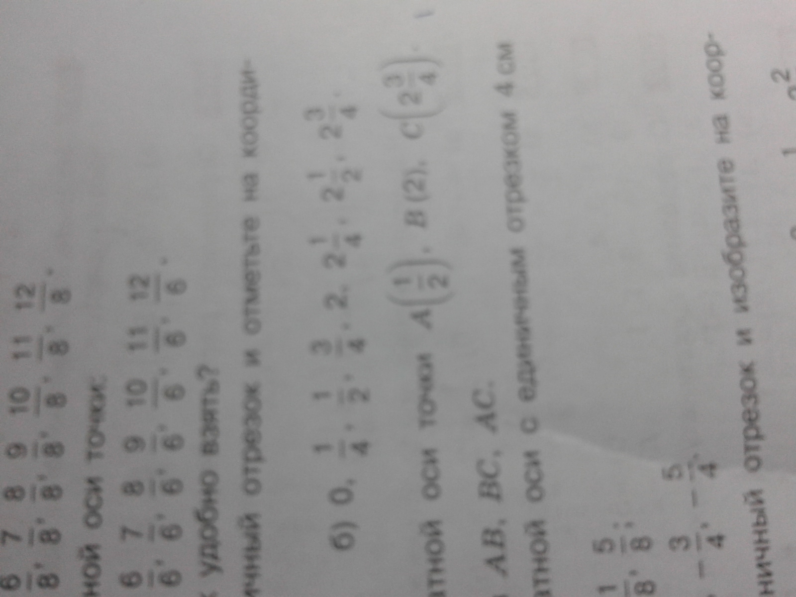 Выберите удобный единичный отрезок и отметьте на координатной оси точки: б) 0, 1/4, 1/2,3/4,2,2 1/4, 2 1/2,2 /34