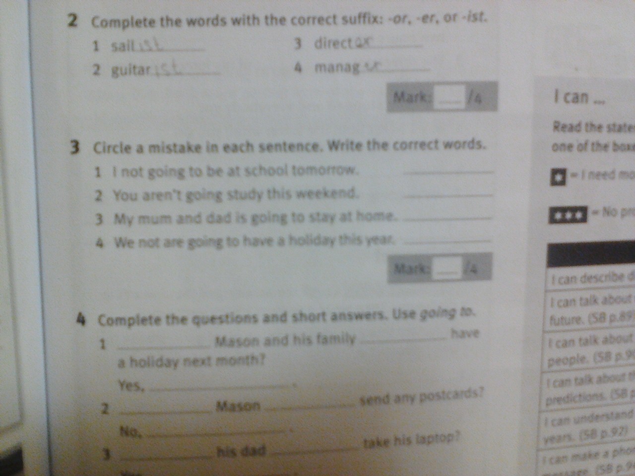 I'm not going to school tomorrow.You aren't going to study this weekend.My mum and dad are going to stay at home.We are not going to have a holiday this year.