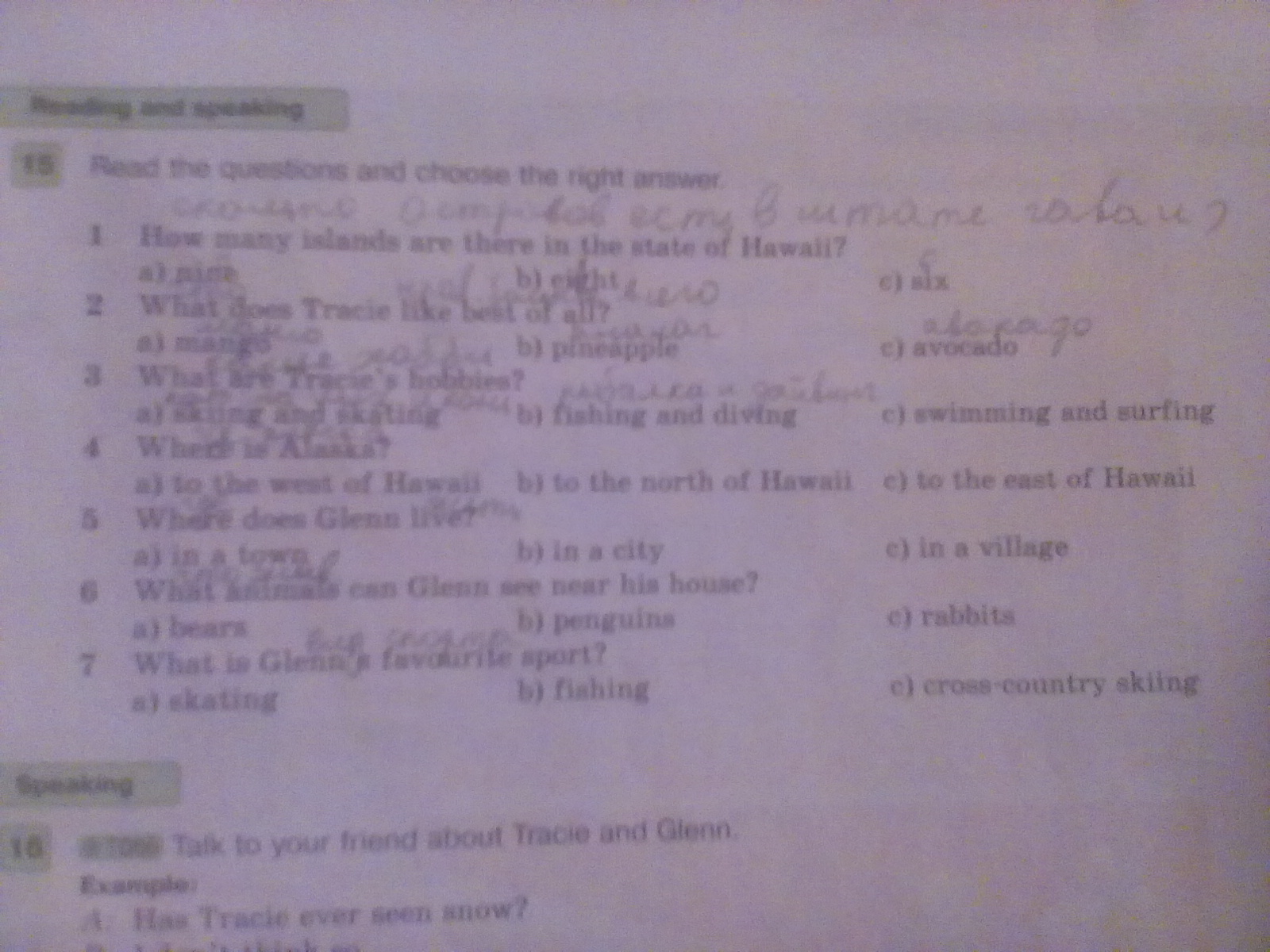 Могу сказать две вещи: вокруг Гавайев 8 островов, т.е. в первом ответ В (Б); а Аляска распологается по отношению к Гавайям на севере от островов ⇒ ответ В (Б) в четвертом