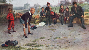 Эта картина показывает нам отличную игру футбол, о которой современные мальчишки стали забывать, теперь им интереснее сидеть за компьютером. Нужно им внимательно рассмотреть картину, я уверена, что она пробудит у них желание выйти на свежий воздух во двор и попинать мяч.