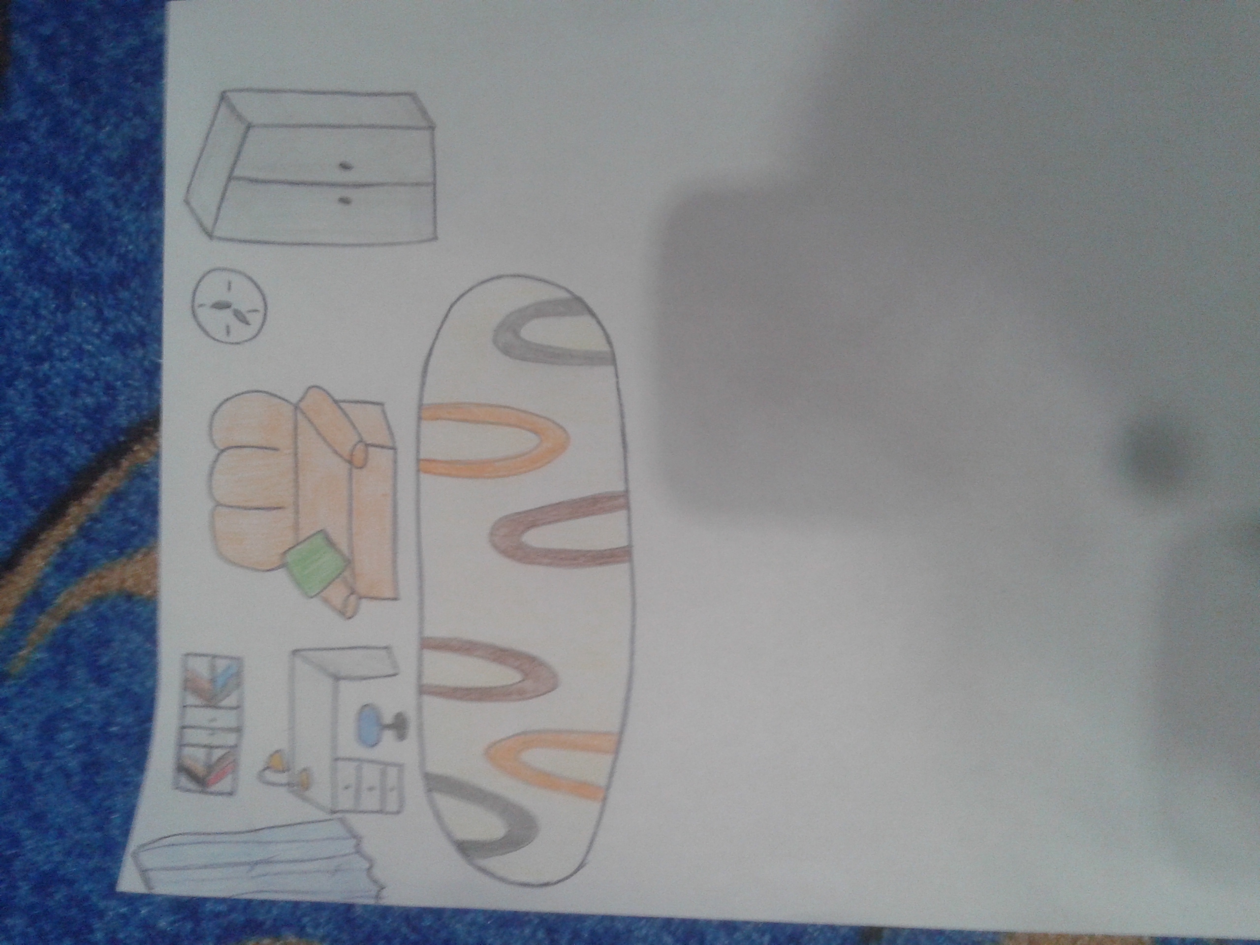 Моя комната среднего размера.На полу лежит красивый ковер. Возле стены стоит шкаф, в котором лежат мои вещи.Слева от шкафа весят часы.Мои родители купили их недавно.Также в моей комнате есть диван оранжевого цвета ,на котором я сплю. Возле окна стоит письменный стол ,за которым я делаю уроки. Около стола есть стул.А над столом висит книжная полка. Моя комната-это мое самое любимое место во всем(ей) доме (квартире)