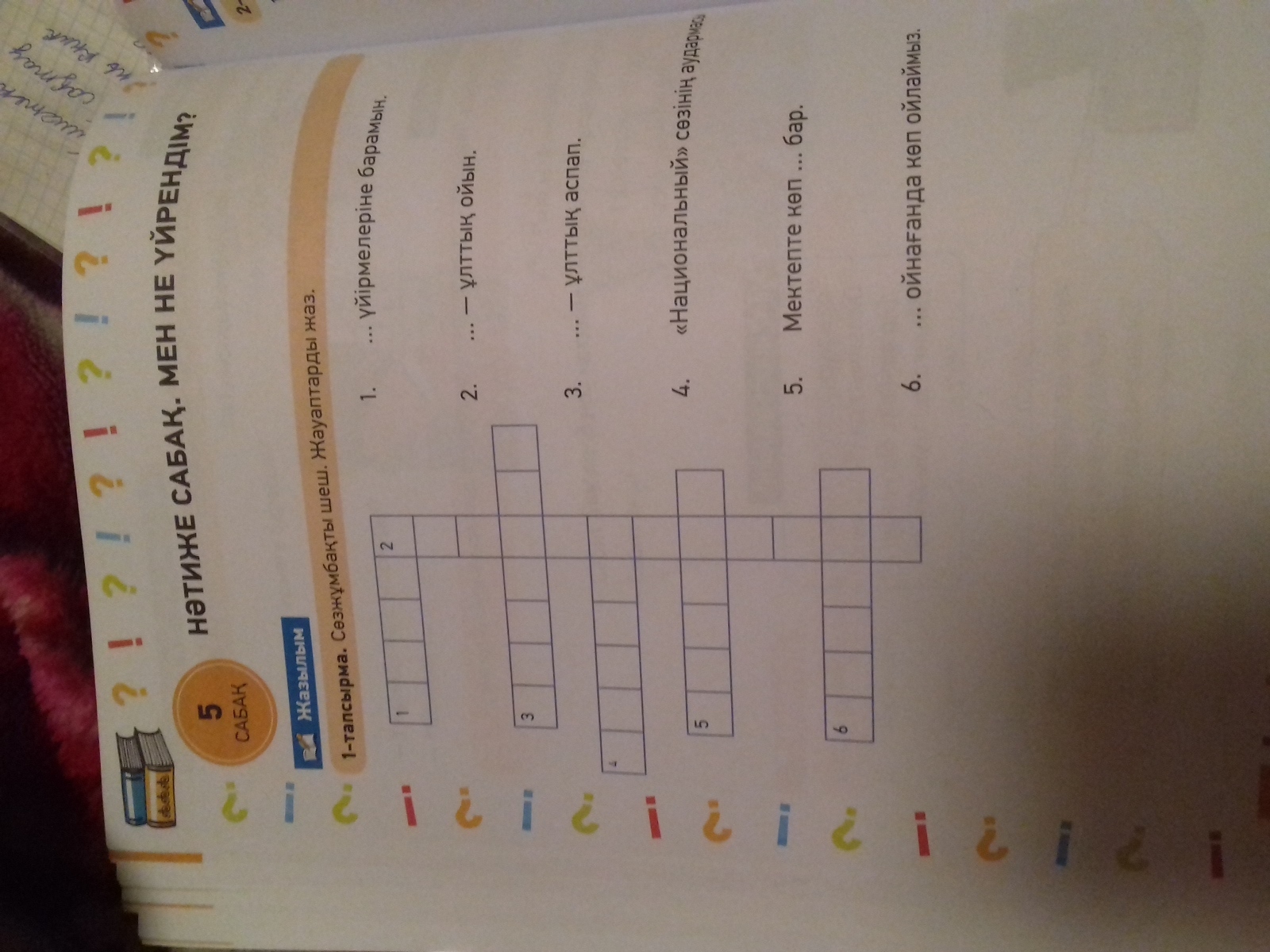 1 .бала 2.асық 3.домбыра 4.ана тіл 5.оқушы 6.өрнекті
