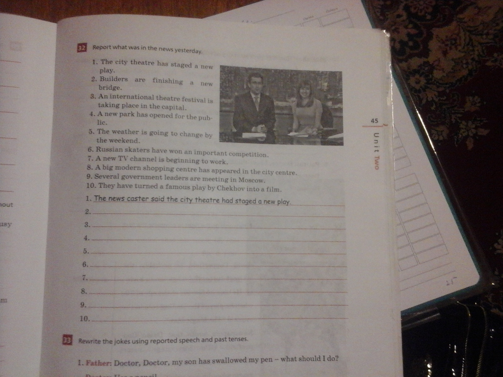 The news caster said an international theatre festival was taken place in the capital