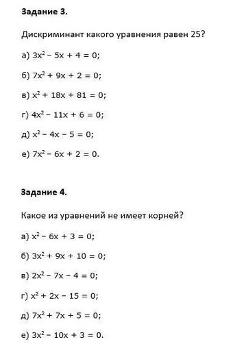 3) Дискриминанты уравнений, записанных в пунктах б, в, г, равны 25.