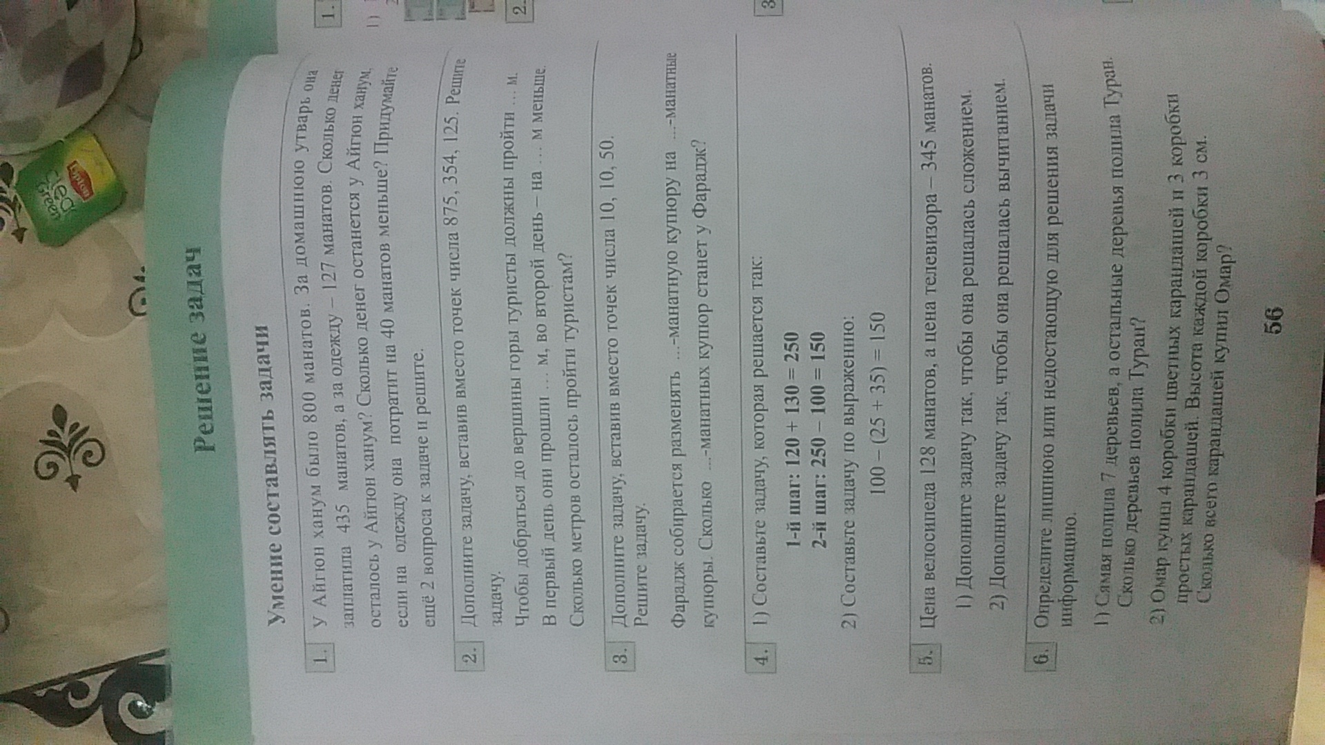 Номер 2. Вставим. 875; 354; 125. Решаем: 875-345-(345-125)=875-345-220=530-220=310. Ответ: Туристам осталось пройти 310 метров.
