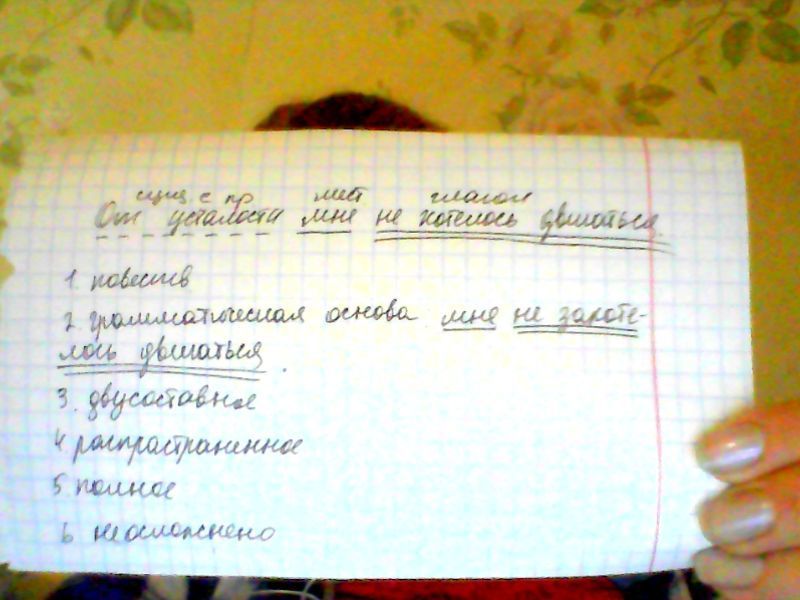 Мне(подлежащие) не хотелось двигаться(сказуемое) от усталости( обстоятельство)